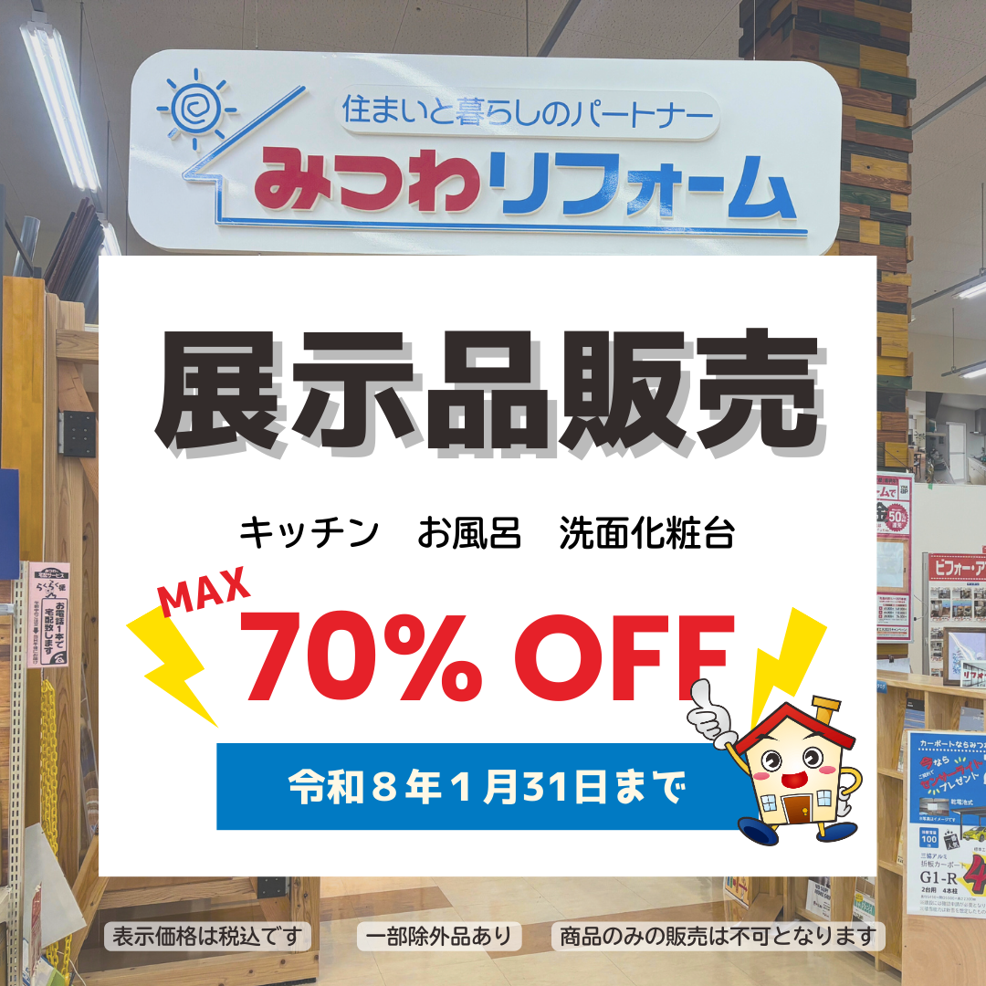 現在、丸岡・武生・九頭龍の各ショールームにて、展示品の特別販売を実施しております。